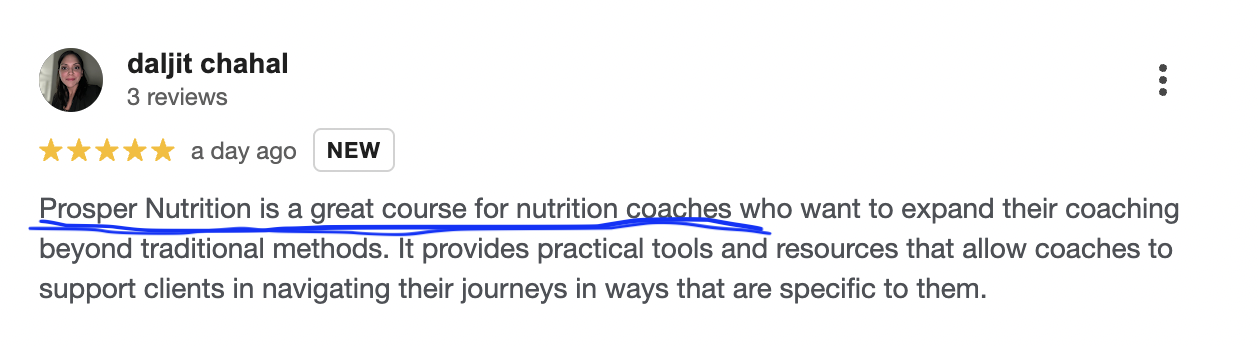 “Prosper Nutrition is a great course for nutrition coaches who want to expand their coaching beyond traditional methods.” (March 6)
